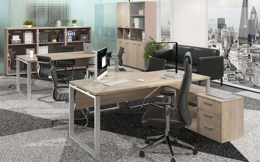 Исполнение: Столешницы, топы — ламинированная ДСП 25мм, кромка ПВХ 2мм., опоры столов ЛДСП 25мм и м/к 60х30. Каркасы шкафов, тумб, фасады, экраны и царги с — ЛДСП18 мм, кромка ПВХ0,4мм., регулируемые опоры, колесные опоры, упаковка гофрокартон.