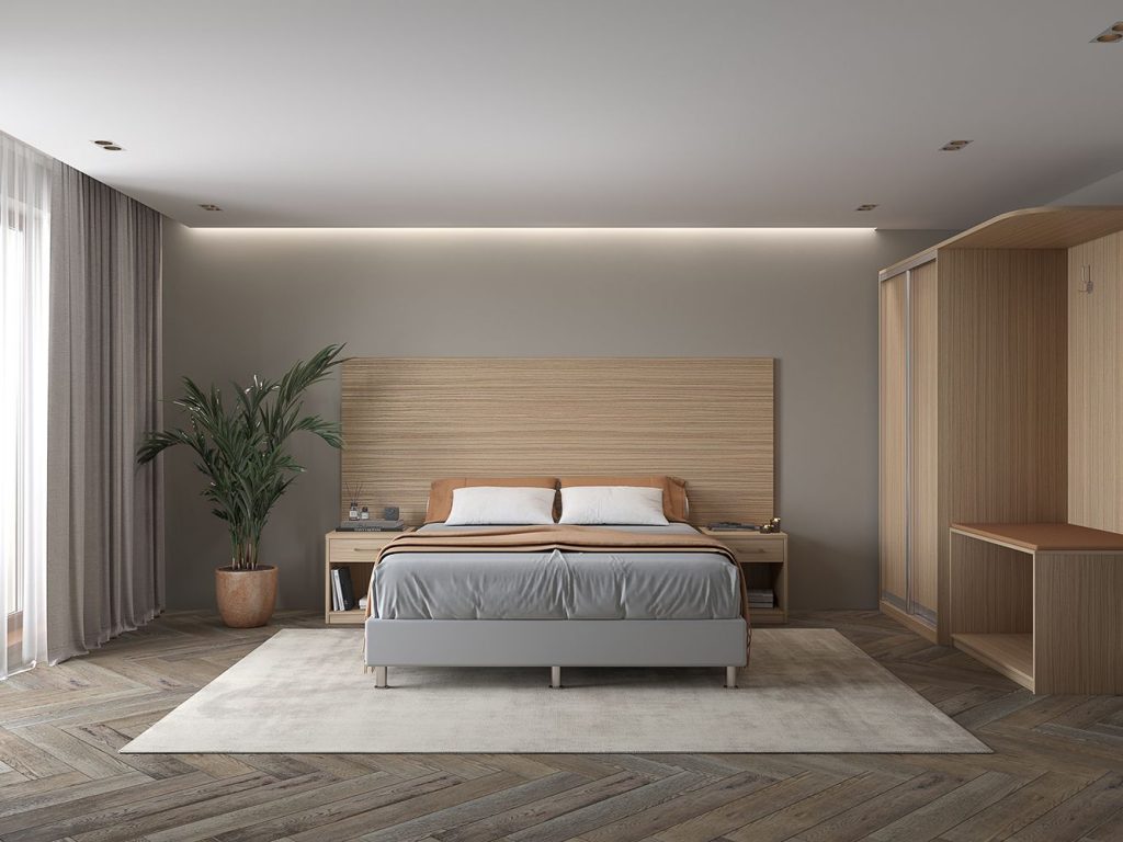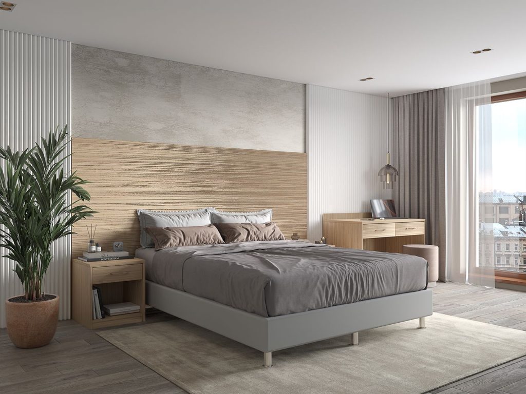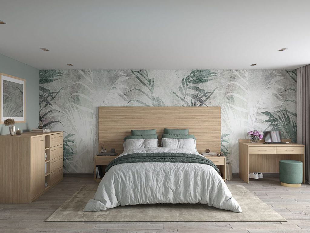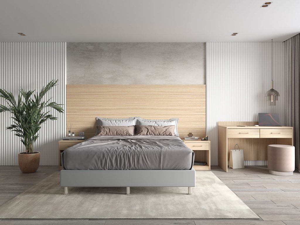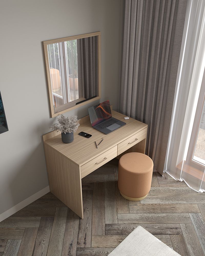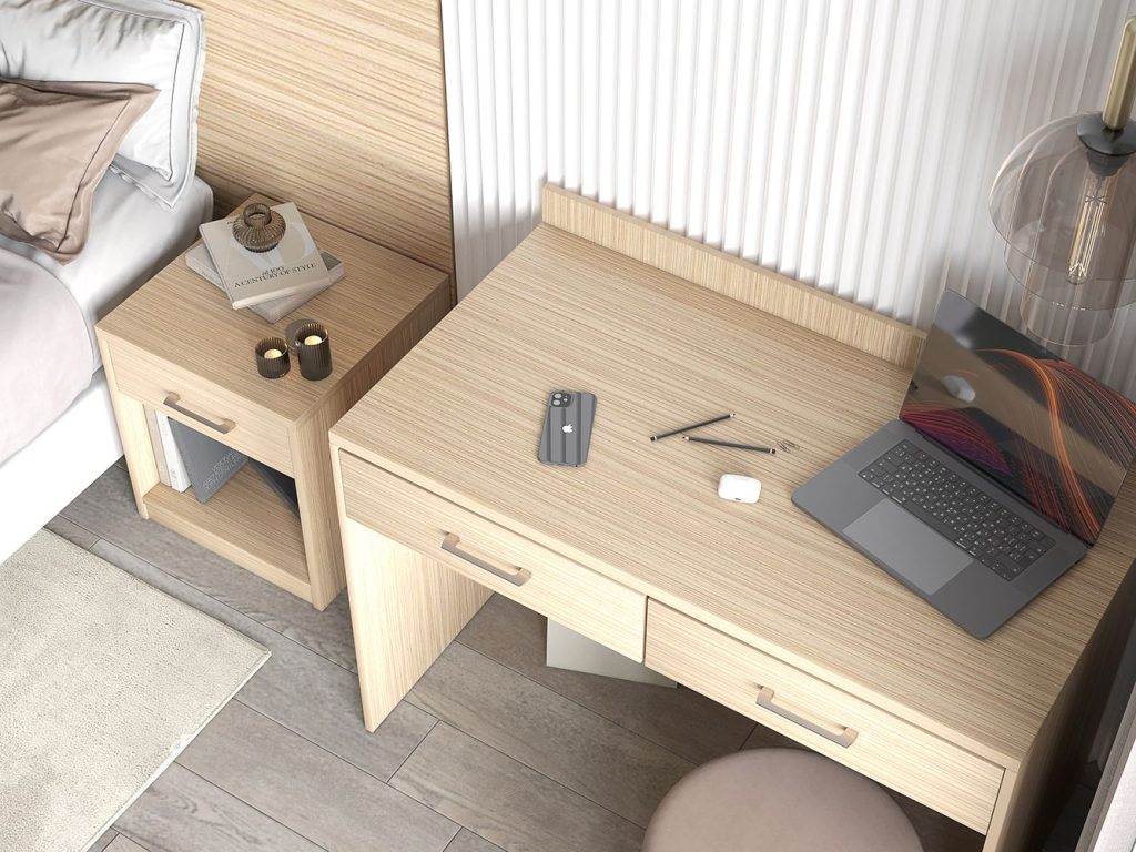 Гостиничная мебель серии КРЕДО исполняется в цвете « зебрано песочный », имитирующем фактуру натуральной древесины.